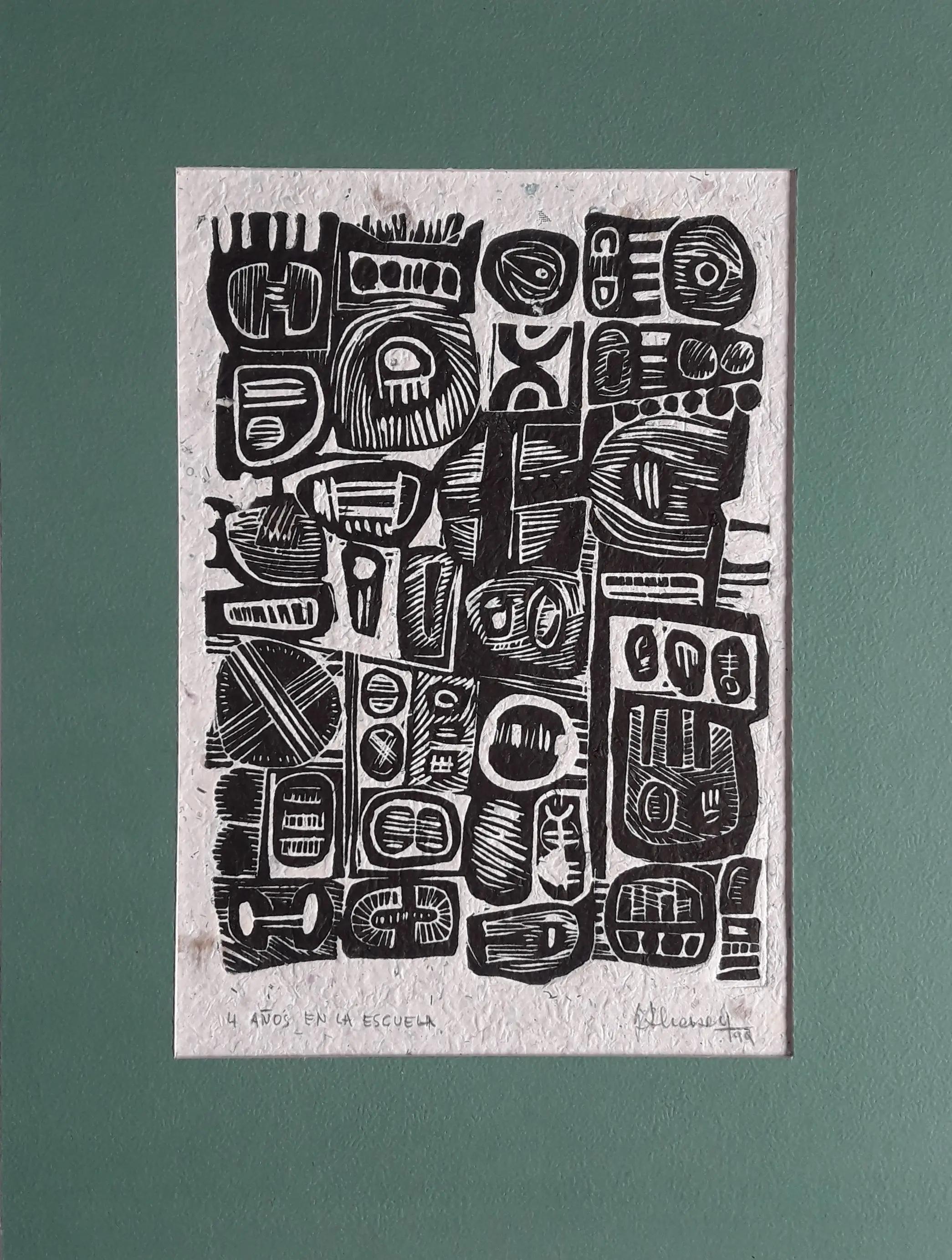 Grabado realizado para obsequiar a egresados de la Escuela de Arte de Berisso