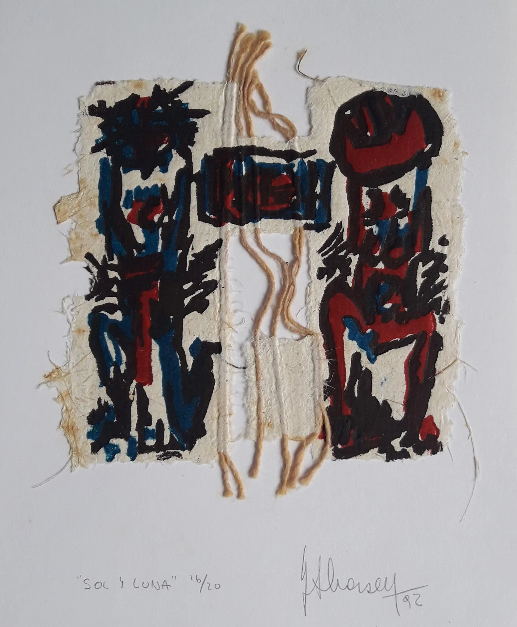 Xilografía sobre papel hecho a mano con inclusiones